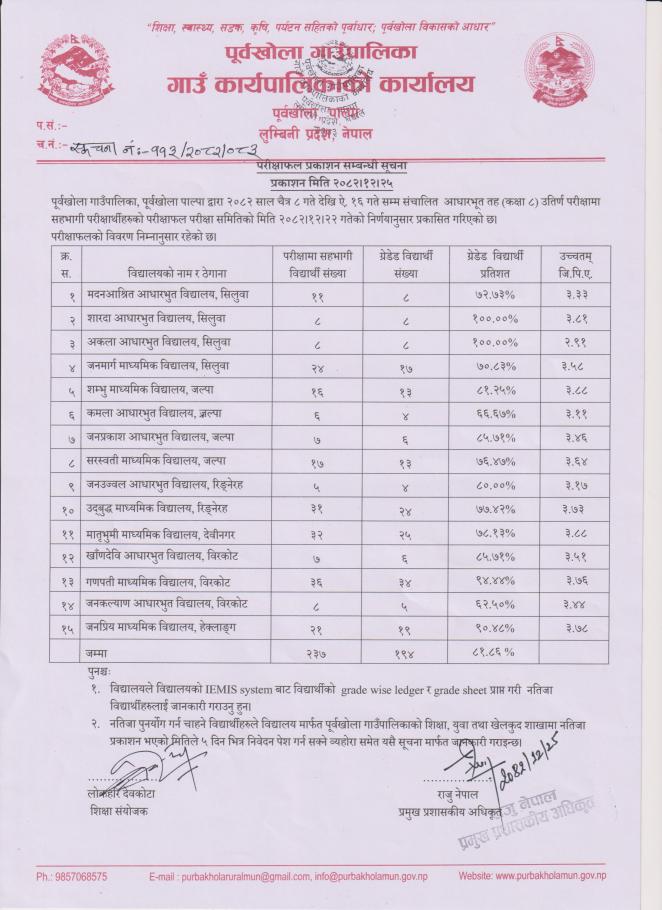 आधारभूत तह (कक्षा ८) को परिक्षाफल प्रकाशन सम्बन्धी सूचना ।