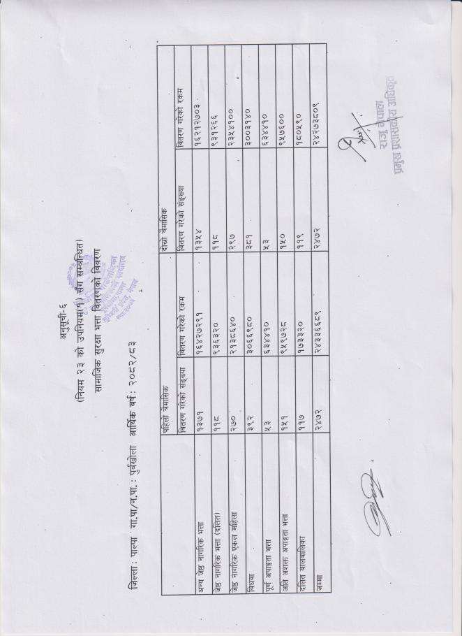 आ.व.२०८२/०८३ को प्रथम र दोश्रो चौमासिकको सामाजिक सुरक्षा भत्ता वितरण विवरण