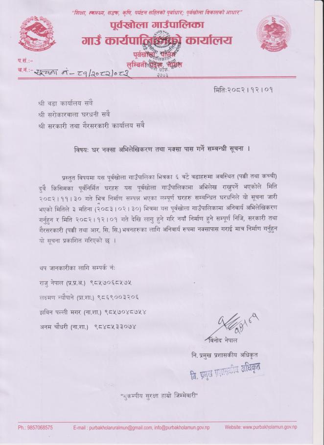 घर नक्सा अभिलेखीकरण तथा नक्सा पास गर्ने सम्बन्धी सूचना ।