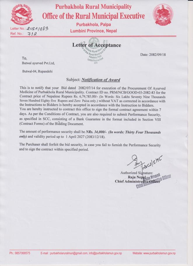 LETTER OF ACCEPTANCE